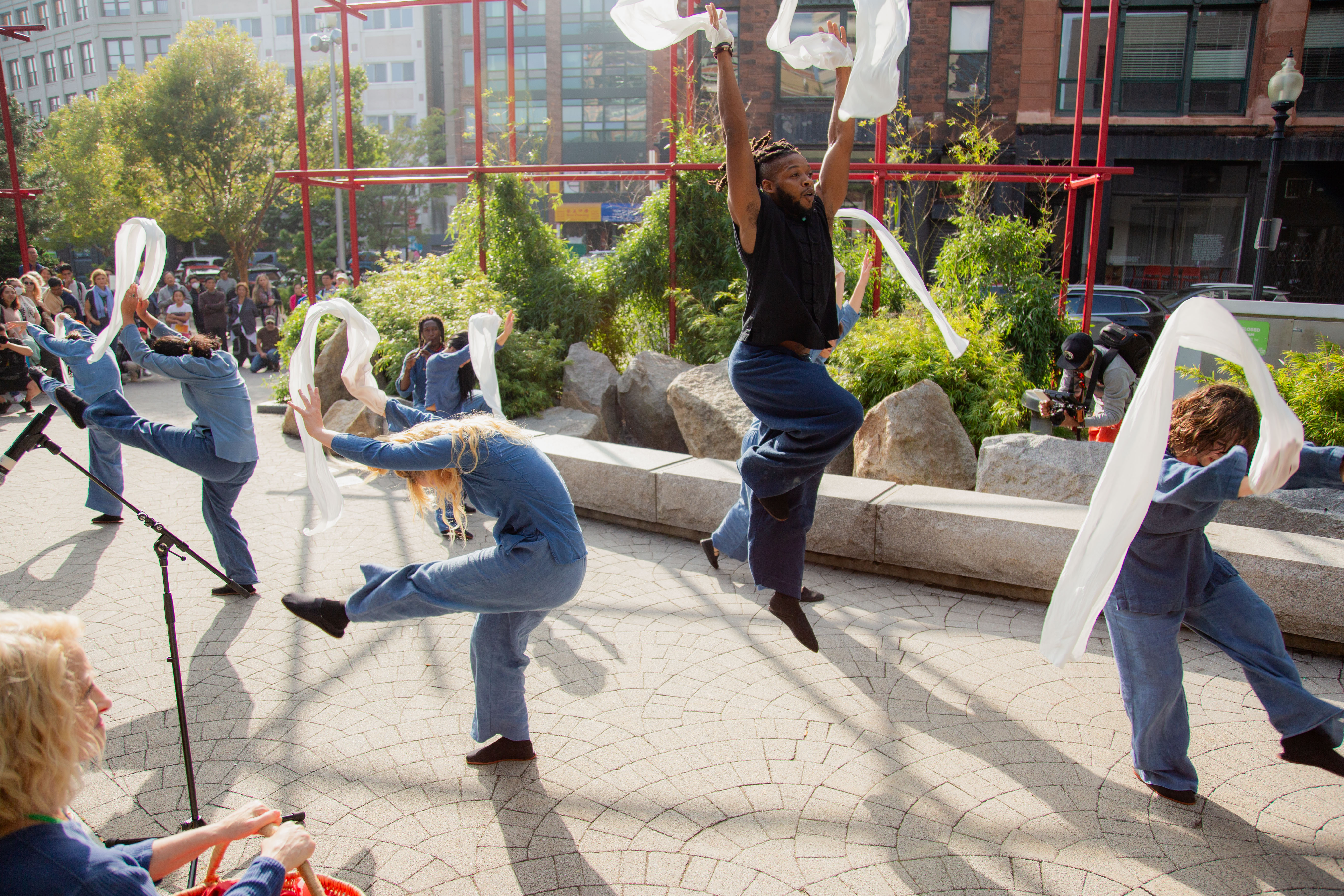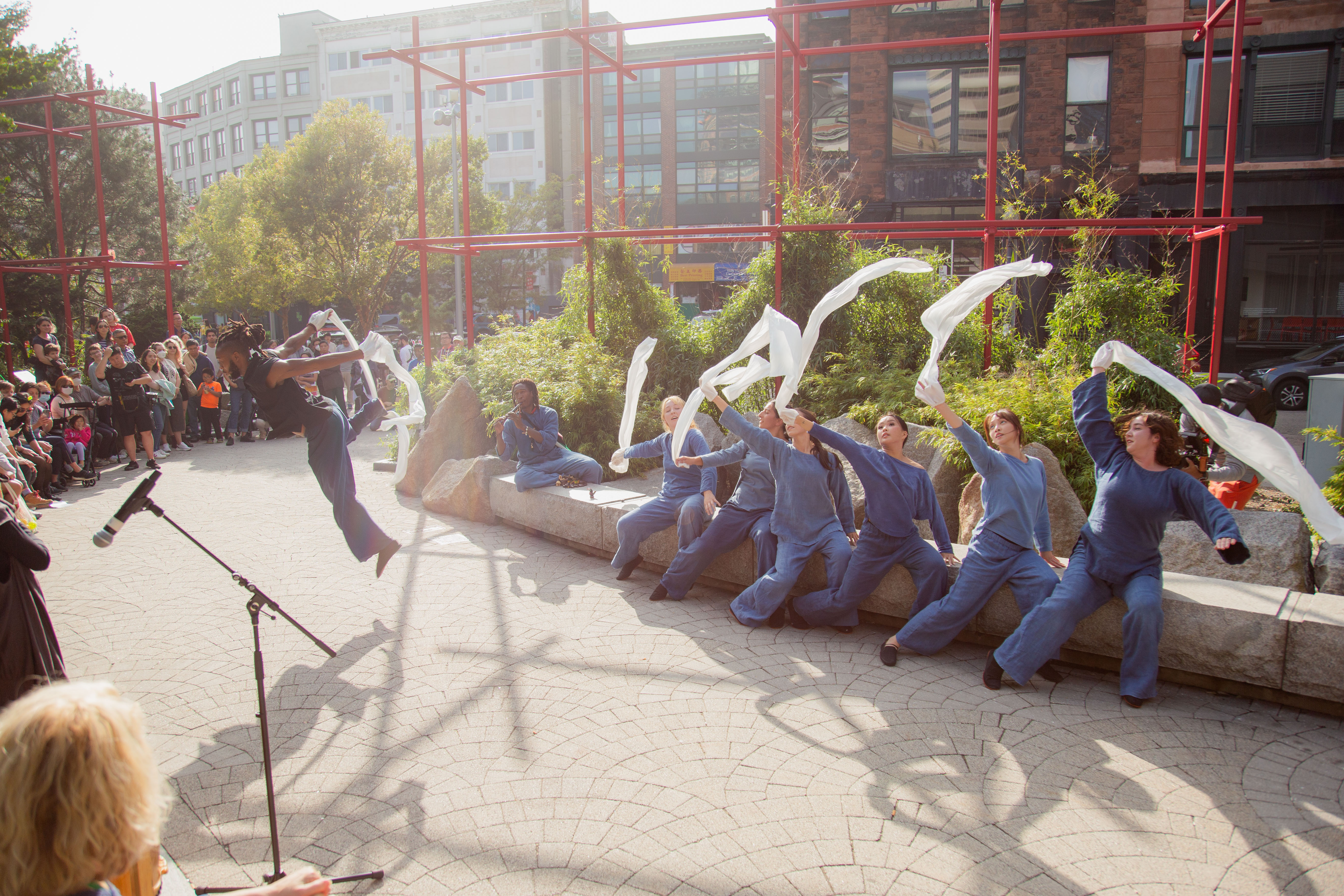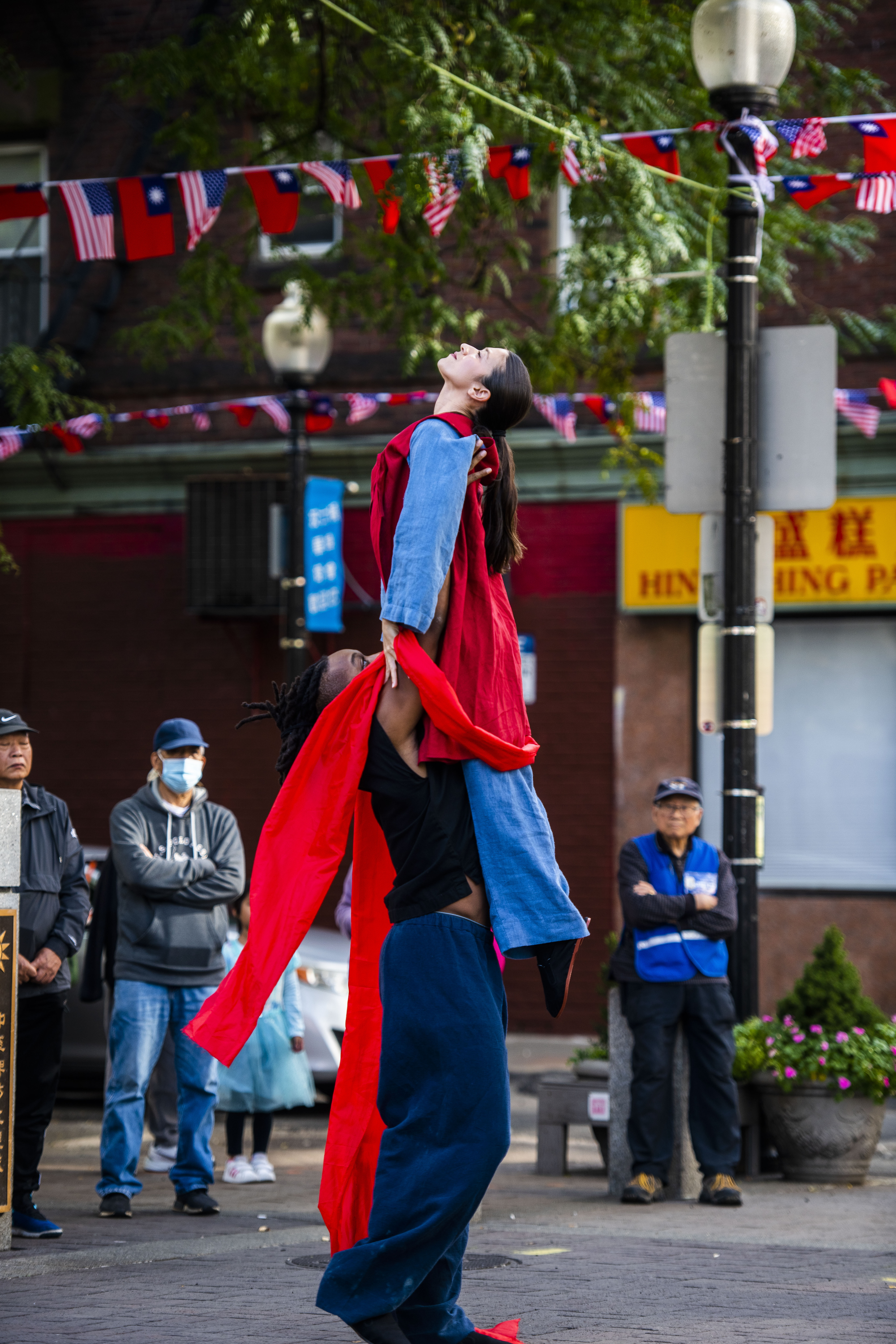 Continuum Dance Project (CDP), led by choreographers/co-directors Adriane Brayton and Fernadina Chan, created Becoming Water in the Auntie Kay & Uncle Frank Chin Park on The Rose Kennedy Greenway in 2023. Focusing on the Boston Chinatown community, the company has utilized imagery from Cynthia Yee’s ‘Hudson Street Chronicles’ to create a work that honors the experiences of the people of Chinatown, while celebrating their resilient spirit.