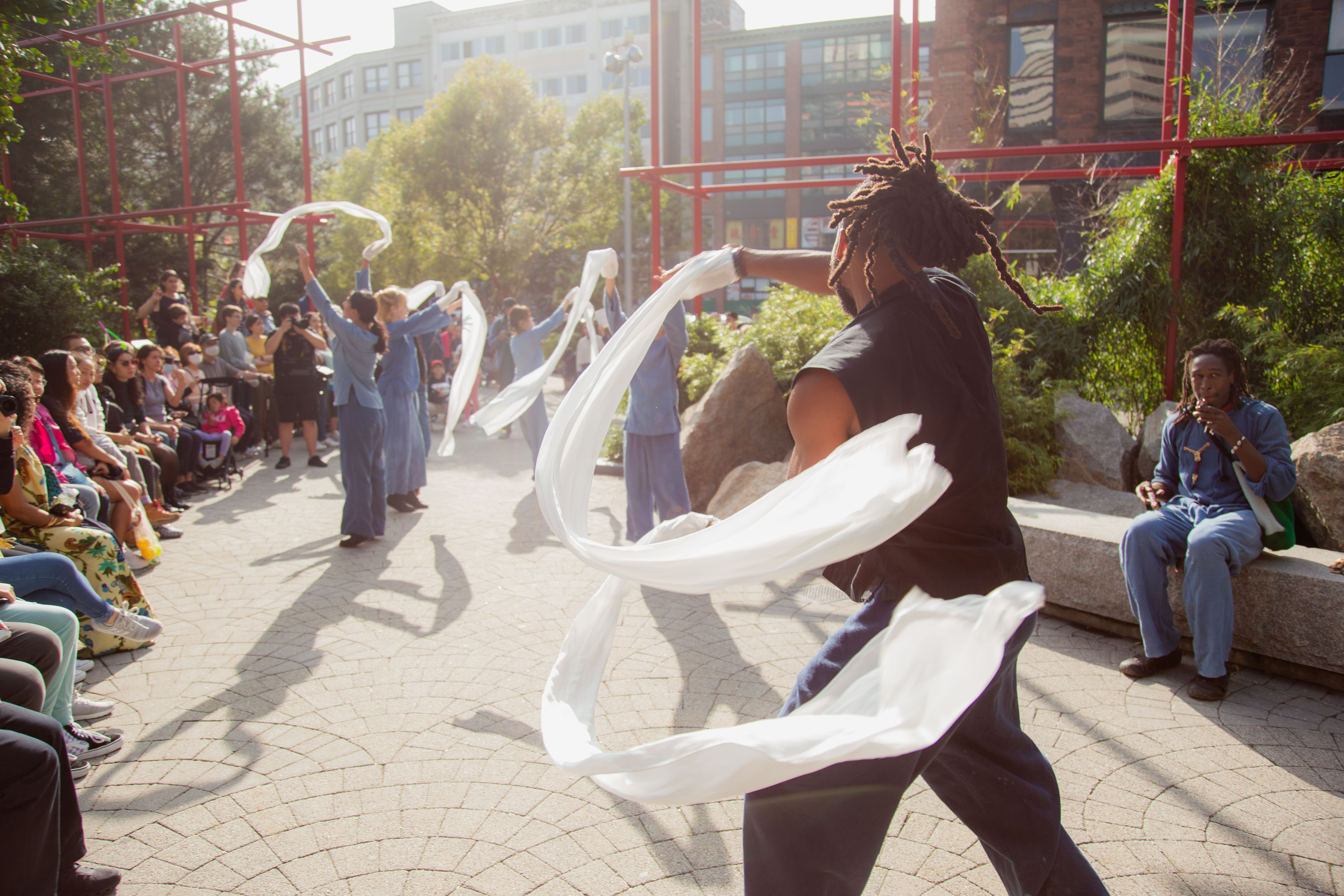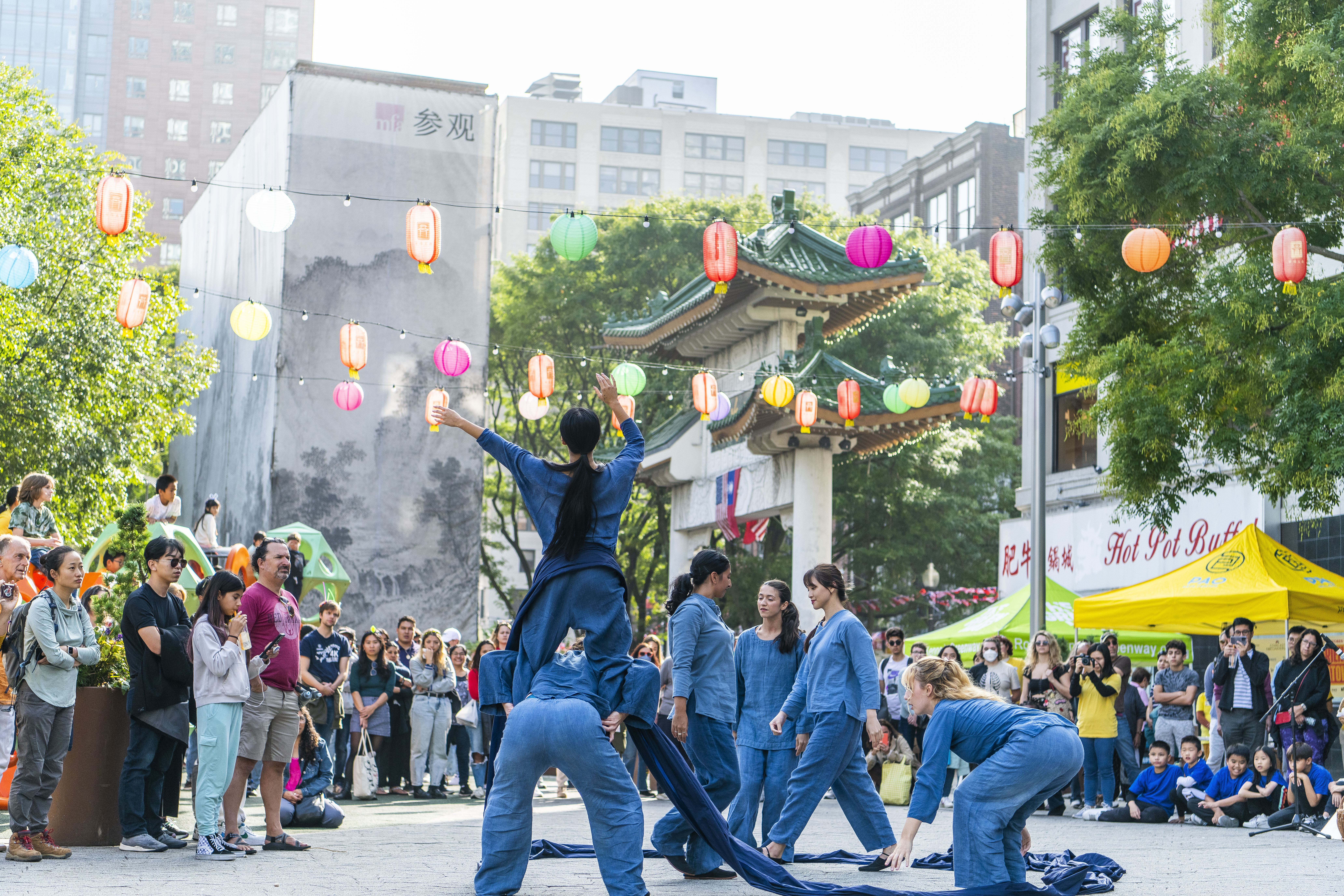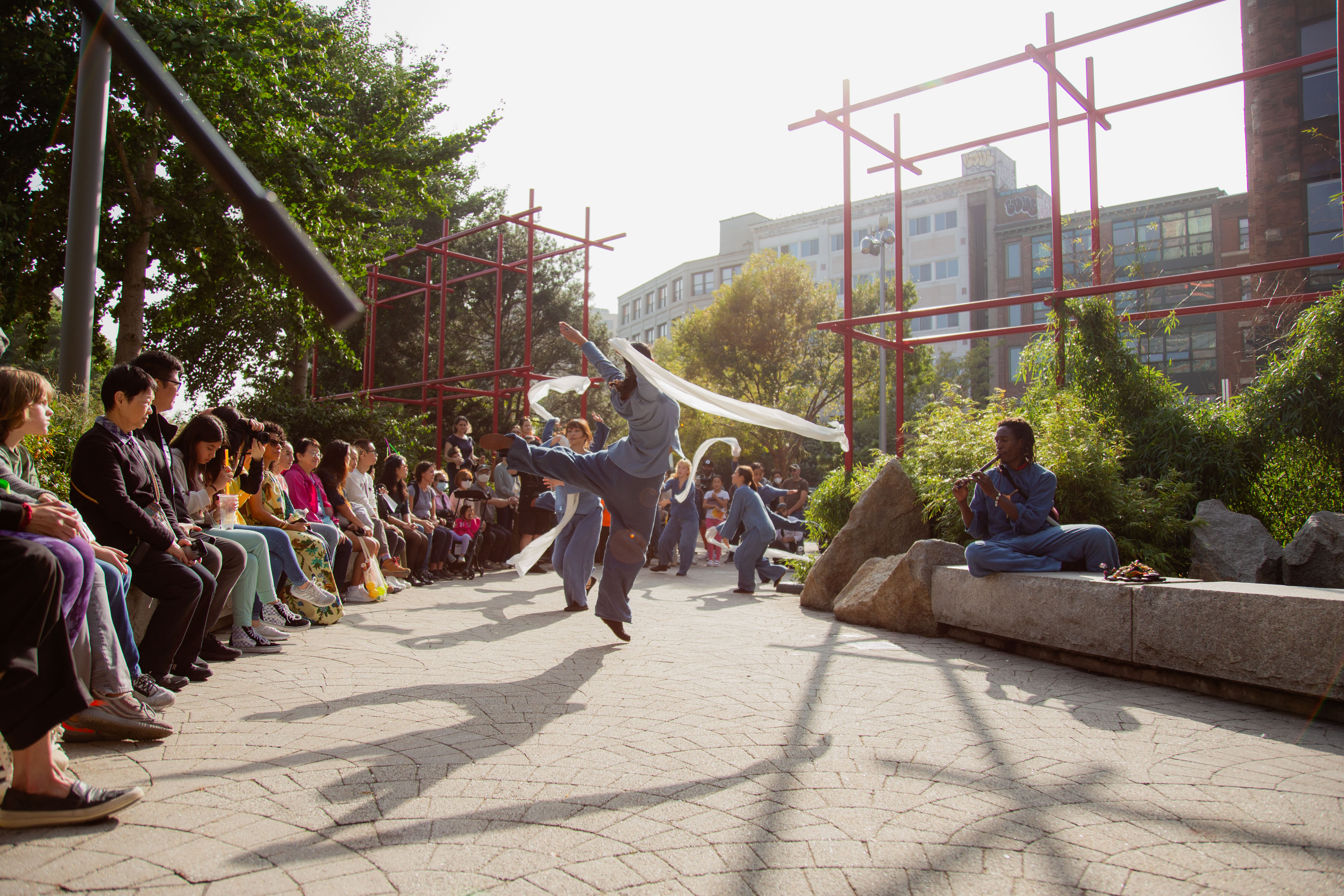 Continuum Dance Project (CDP), led by choreographers/co-directors Adriane Brayton and Fernadina Chan, created Becoming Water in the Auntie Kay & Uncle Frank Chin Park on The Rose Kennedy Greenway in 2023. Focusing on the Boston Chinatown community, the company has utilized imagery from Cynthia Yee’s ‘Hudson Street Chronicles’ to create a work that honors the experiences of the people of Chinatown, while celebrating their resilient spirit.